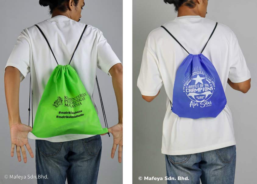 Beg ini sesuai bagi anda yang ingin beg yang ringan dan kecil. Custom beg drawstring ini boleh dibawa apabila anda ingin pergi beriadah atau mendaki gunung kerana reka bentuk ini fleksibel. Anda boleh design beg ini dengan sulam nama atau corak yang anda suka.